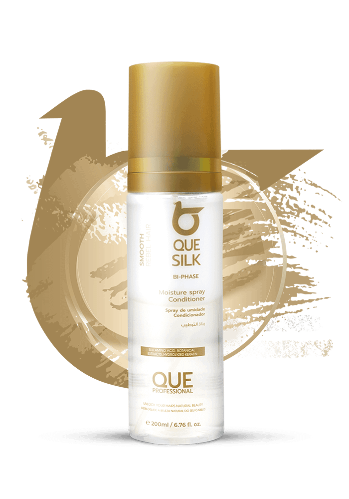 QUESILK Bi-Phase Moisture Spray Conditioner – is developed to bring the benefits of a professional salon treatment to your everyday hair care routine. Designed to combat dryness and frizz, our moisture hair spray conditioner is the perfect way to maintain and enhance the re- sults of your keratin treatment.